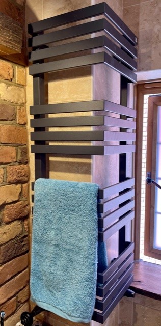 From the smallest of bathrooms, there are some great ideas out there… even a right angled heated towel rail to sit snuggly & to disguise the boxing which is housing the soil pipes.. !!